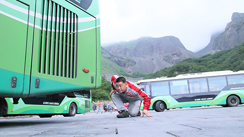 清晨,一縷陽光照在山門調(diào)度室前,穿著紅色工作服的檢修員正在認(rèn)真進(jìn)行每天的例行檢查,“三崗?fù)瑱z”是長白山北景區(qū)山門開放前,一輛一輛車的排查隱患,一輛車一輛嚴(yán)格檢驗(yàn)……他們就是活躍在長白山旅游股份有限公司北景區(qū)的一支特殊的隊(duì)伍,詮釋著“工匠精神”的檢修部維修人員。
