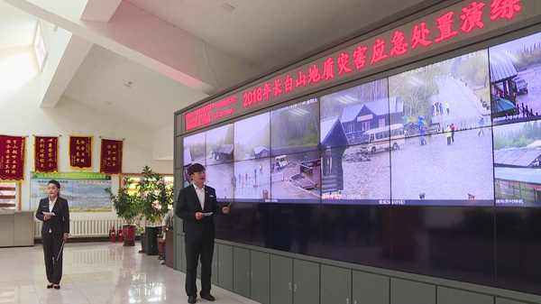 首先,講解員向參加觀摩的各位領(lǐng)導(dǎo)介紹此次演練目的、參加觀摩單位、參演人員及物資情況。隨后,演練現(xiàn)場總指揮,股份公司景區(qū)運(yùn)營部、天池企業(yè)管理公司總經(jīng)理孫青春,一邊通過手中的對講機(jī)下達(dá)命令,指揮演練進(jìn)行,一邊與現(xiàn)場兩位講解員通過監(jiān)視屏幕為觀摩團(tuán)解說演練內(nèi)容。