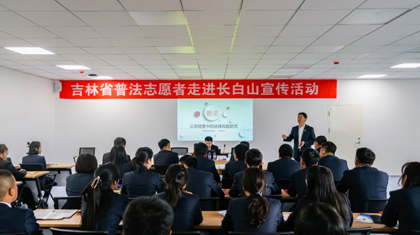 為加強長白山保護開發(fā)區(qū)法治建設(shè),提升普法工作水平,認真貫徹落實“七五”普法規(guī)劃,結(jié)合吉林省司法廳普法志愿者服務試點工作實施方案,長白山司法局、長白山依法治區(qū)領(lǐng)導小組辦公室結(jié)合我區(qū)法治宣傳工作具體情況,于10月9日邀請吉林衡豐律師事務所李偉律師在長白山旅游股份有限公司三樓會議室召開主題為“公司經(jīng)營中的法律風險防范”普法講座。公司各主要領(lǐng)導、部門負責人、子分公司負責人及其他業(yè)務部門相關(guān)人員50余人參加了普法講座。
